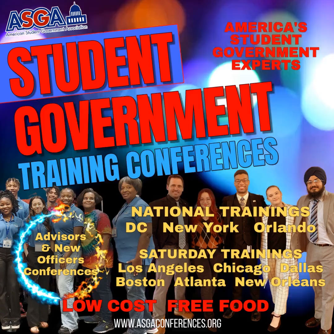 ASGA is ALL-IN on Student Government training, research & consulting—always ahead of every trend & drama nationwide. Thousands of student leaders & advisors train with us every year. Every campus welcome—big, small, public, private, doesn’t matter. Epic national events: DC (National SG Summit), NYC (Spring SG Summit), Orlando (Fall SG Summit).