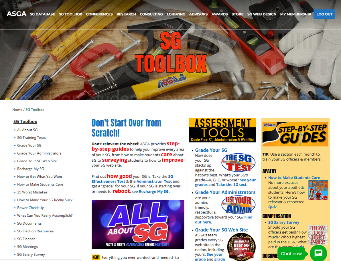 There’s no need to reinvent the wheel! Use these ASGA resources to improve voter turnout, get more publicity for your SG, recruit more members, get students to care about your SG, learn your current strengths/weaknesses, and more.